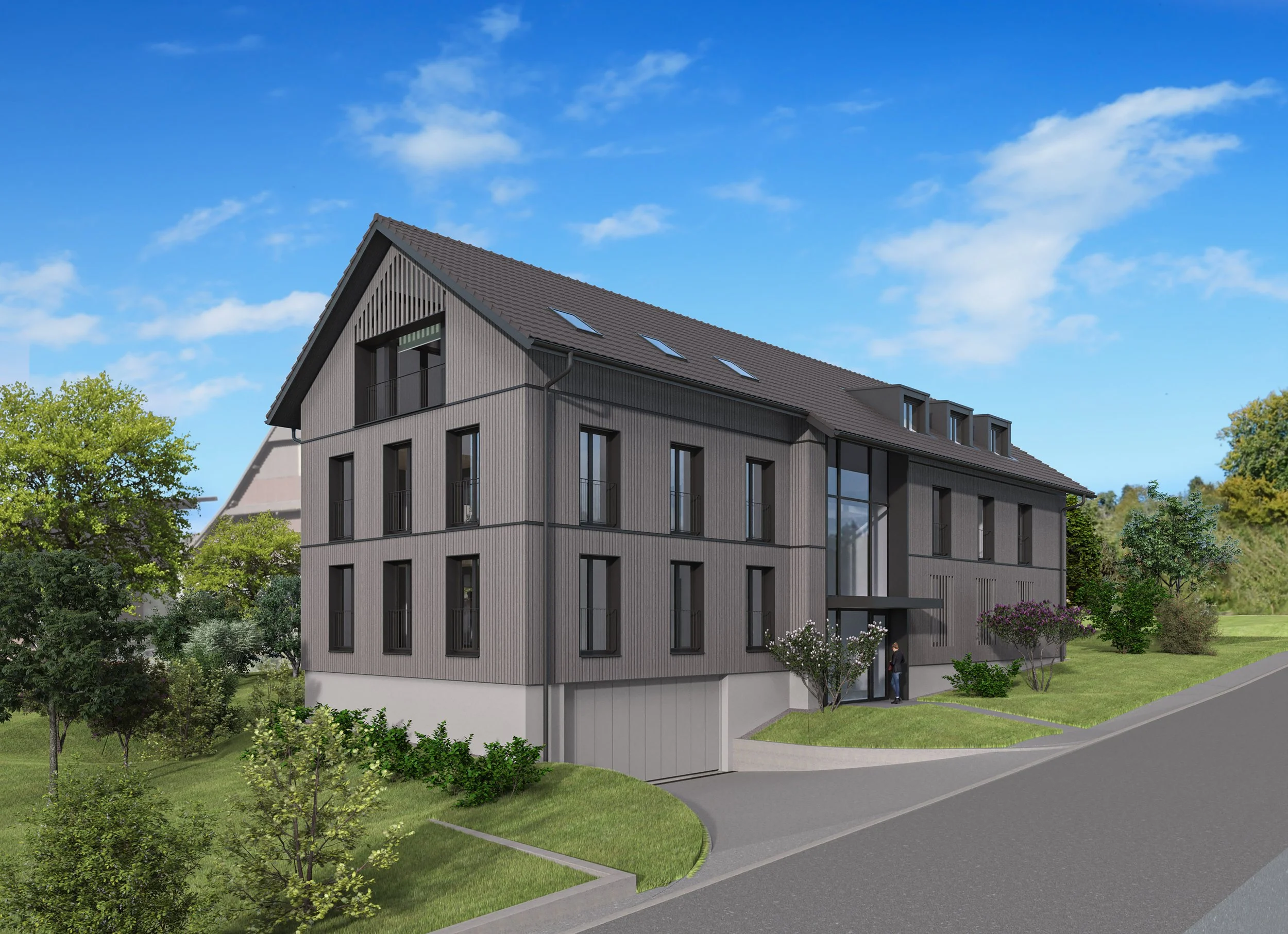 Das geplante Neubauprojekt in Sulz umfasst ein Mehrfamilienhaus mit insgesamt fünf Wohnungen und einer klaren, zurückhaltenden Architektur. Die Wohneinheiten sind funktional geplant und auf eine effiziente Nutzung des Wohnraums ausgerichtet. Grosszügige Fensterflächen sorgen für eine gute natürliche Belichtung, Balkone und private Aussenbereiche sind vorgesehen. Ergänzt wird das Projekt durch gemeinschaftliche Nebenräume sowie eine zeitgemässe Erschliessung, ausgelegt auf einen nachhaltigen und alltagstauglichen Wohnstandard.